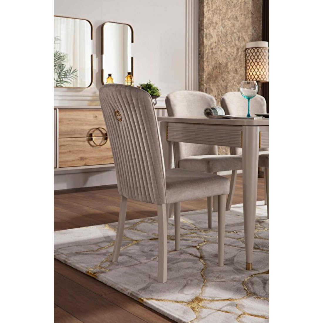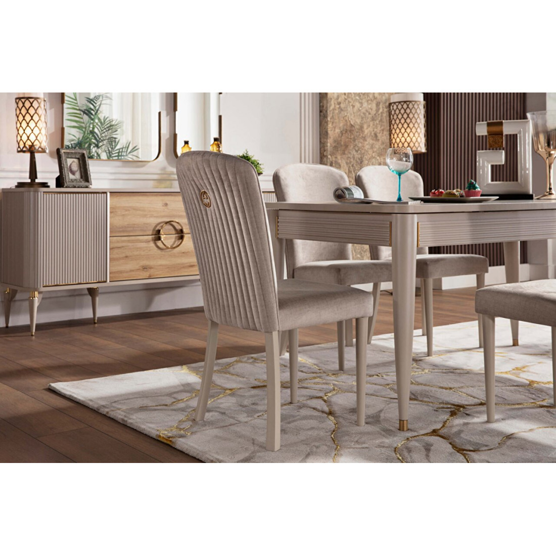 Обеденный раздвижной стол Санвито SANV-14 прямоугольной формы имеет габаритные размеры 1640 мм x 900 мм x 765 мм. В разложенном состоянии длина стола увеличивается до 2040мм. Стол продолжает линейку коллекции Санвито, сочетая в себе кремовый цвет, вертикальные полосы и ненавязчивую золотистую отделку некоторых элементов. Наслаждайтесь красотой и эстетикой SANVITO в любом предмете интерьера.